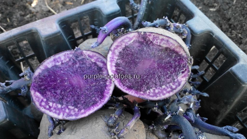 Сорт All Blue в настоящее время один из самых популярных сортов картофеля с синей мякотью. По сроку созревания среднеранний. Широко распространён в Европе. Клубни округло-овальные с мелкими глазками. Мякоть синяя. Вкус у приготовленных клубней отличный. Отличается от других синемясых сортов наличием белого кольца под кожицей. Сорт диетического питания, который содержит большое количество антиоксидантов, полезных для здоровья. Цвет мякоти не меняется в процессе приготовления пищи. Сохраняет цвет при жарке или в запеченном виде, при варке и в микроволновой печи.