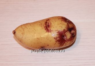Оригинальный сорт картофеля с необычной окраской кожуры селекции ЛПХ "Картофель". На светложёлтой кожуре разбросаны сине-фиолетовые пятна, в основном, вокруг глазков. Настоящая экзотика! За что сорт и получил название Синяя Клякса (Purple Blot). Мякоть светло-жёлтая, хороша на вкус после приготовления. Сорт среднего срока созревания. Куст средней высоты, листья светло-зелёной окраски. Цветы красивого сине-голубого цвета. Цветение кратковременное. В жаркую погоду может отсутствовать. Сорт многоклубнёвый с хорошей урожайностью.