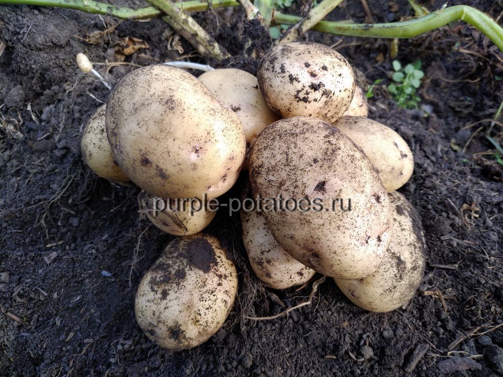 Отличный среднепоздний сорт белорусской селекции. Клубни округлые, крупные, количество в гнезде 8–12 штук, массой 130-140 гр., кожура желтая, сетчатая, глазки мелкие, розовые, мякоть желтая, цветки белые. Сорт урожайный до 500 кг с сотки. Клубни после приготовления имеют отличный вкус, сильно развариваются (содержание крахмала до 22,7%). Отлично подходит для приготовления пюре, но может использоваться и для многих других блюд.