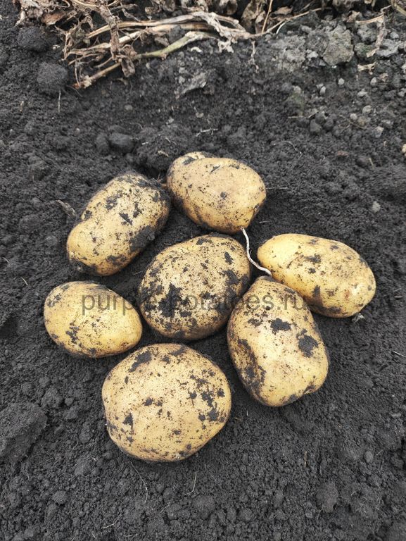Очень ранний сорт немецкой селекции. Клубень овальный с мелкими до средней глубины глазками. Кожура и мякоть жёлтые. Масса товарного клубня - 106-139 г. Содержание крахмала - 15,6%. Вкус отличный. Лёжкость хорошая. Сорт устойчив к возбудителю рака картофеля, золотистой картофельной цистообразующей нематоде, а также к морщинистой и полосчатой мозаике. Обладает отличными вкусовыми качествами. Имеет самые высокие дегустационные оценки. Сорт слабо рассыпчатый, тип варки B. Особенно хорош для салатов, гарниров и супов. Мякоть при варке не темнеет. Содержание крахмала – 15,6%.