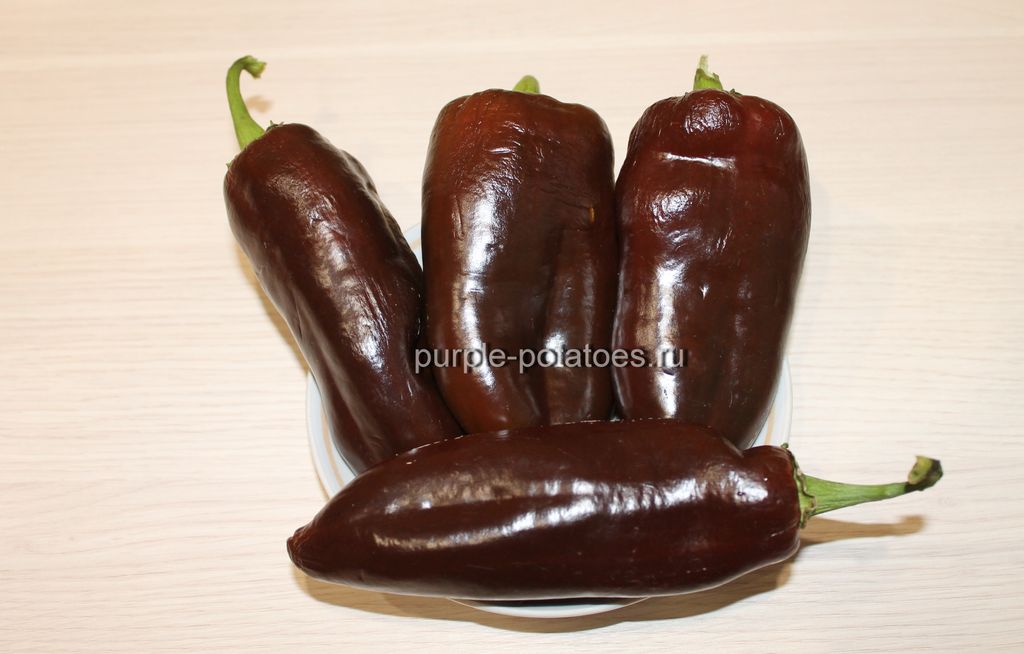 Новинка сибирской селекции! Этот сорт имеет привлекательный вид плодов. В биологической спелости они приобретают настоящую шоколодную окраску. Сорт среднеспелый, куст высотой 70-80 см, формирует большое количество пирамидальных плодов с закругленным гладким кончиком. Толщина стенки плода 5-6 мм, вкус хороший. Зрелые плоды красивого цвета украсят любой летний салатик. Сорт отлично растет в открытом грунте и временными пленочными укрытиями.