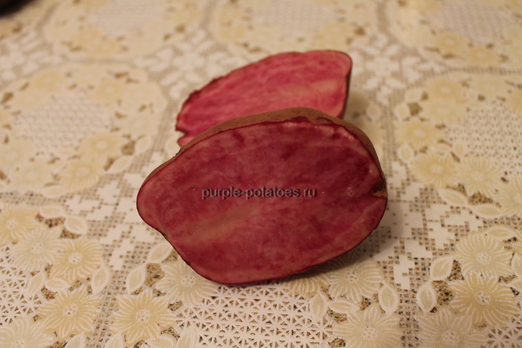 Среднеранний, крупноклубнёвый урожайный сорт. Клубень овальный с гладкой кожурой красного цвета и розово-красной мякотью. Обладает хорошим, приятным вкусом, не обесцвечивается при кулинарной обработке, может добавляться в супы, рагу или другие блюда. Отлично показывает себя в суровых сибирских условиях.