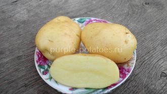 Столовый ранний сорт картофеля. Клубни средние и крупные (14-16 шт.), высокая урожайность. Крахмала от 11,0 до 14,0%. Сорт имеет отличный вкус, не разваривается, а мякоть не темнеет. Устойчив механическим повреждениям, вирусам и к заболеваниям. Растение средней высоты, промежуточного типа. Стебель по толщине средний, не окрашен, лист тёмно-зелёный. Венчик красно-фиолетовый, форма клубней округло-овальная, кожура жёлтая и гладкая. Глазки мелкие, мякоть светло-жёлтая. Световой росток маленький, основание красно-фиолетового цвета, соцветие компактное, среднее по величине. Клубни имеет ровную поверхность, что придаёт отличный внешний вид. Устойчив к возбудителю рака картофеля и золотистой картофельной нематоде. Ценность сорта: нематодоустойчивость, дружная отдача ранней продукции, высокий выход товарных клубней, хорошие вкусовые качества и лежкость.